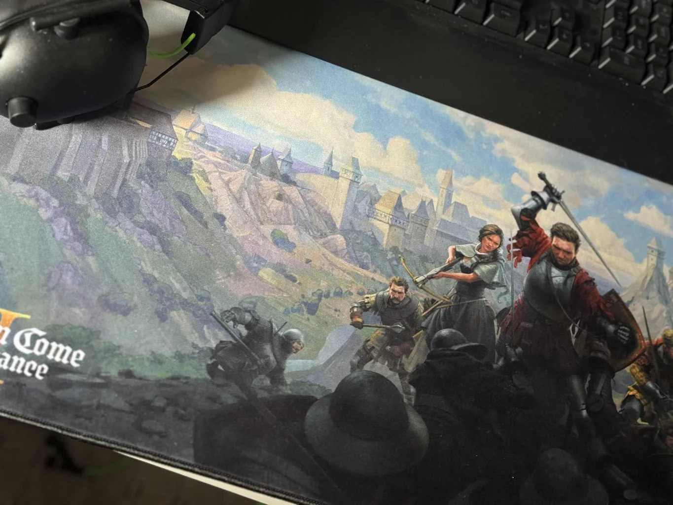 This extra-large mouse pad features the epic official keyart from Kingdom Come: Deliverance II by Warhorse Studios.