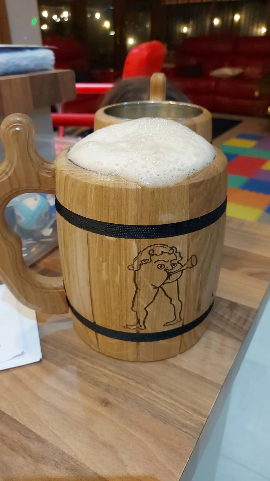 Please wash the wooden tankard by hand; washing it in the dishwasher may cause permanent damage.