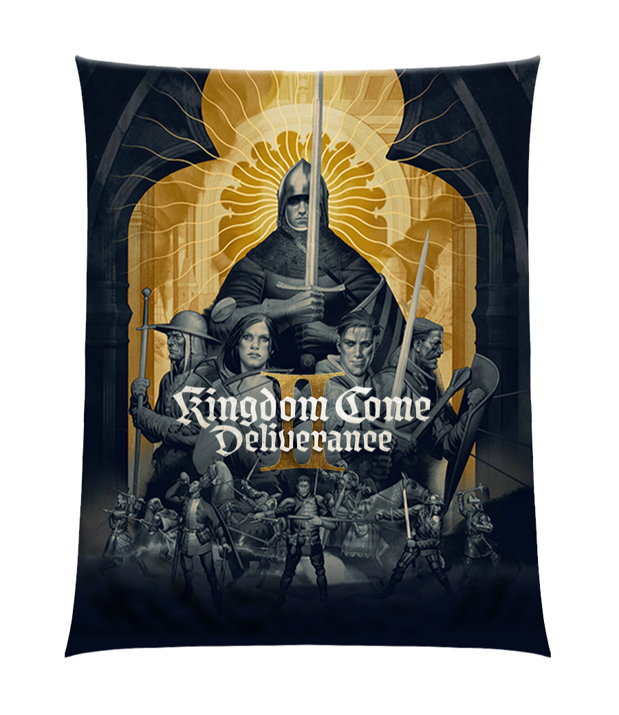 The iconic key art of Kingdom Come: Deliverance II by Brazilian artist João Ruas already adorns the official artbook and steelbook, and now it can decorate your wall or bed as well. This massive 140 × 200 cm tapestry is a fabric wall print that will instantly transform the look of your gaming den, living room, or bedroom.