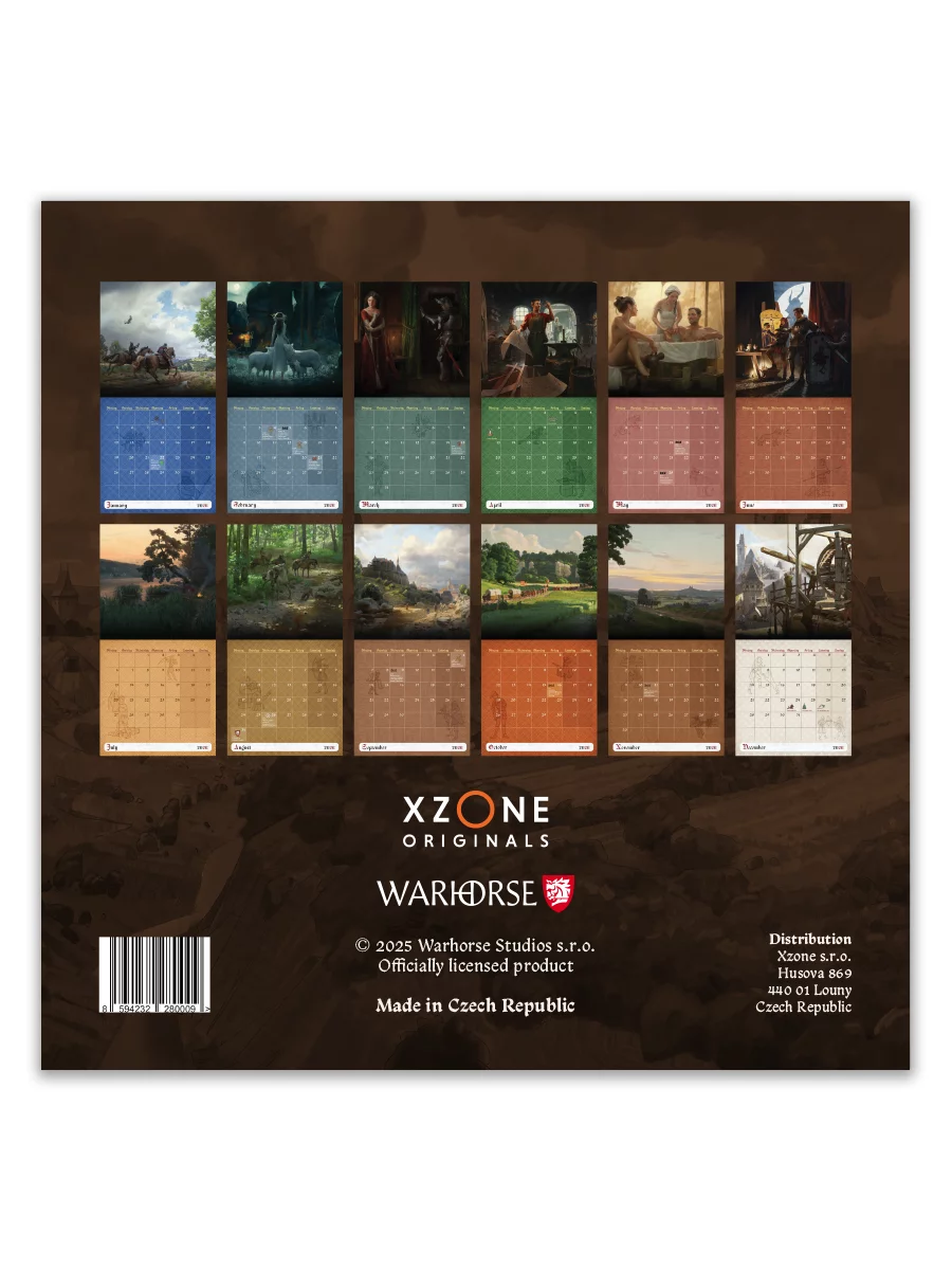 Enjoy a whole year in the company of Kingdom Come: Deliverance II. Each month features a beautiful illustrations from the game, capturing the atmosphere of Henry’s story and the beauty of historical locations from Kutná Hora to Czech castles and villages.